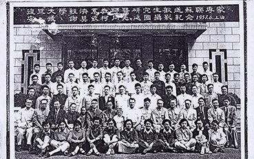 1917年复旦大学国民储蓄合作银行成立。这是中国最早的信用合作社,也是复旦经济系科最早的实习基地。左图为“合作银行”集体留影。