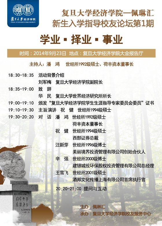 19:10-19:30 主旨演讲 祝 健 世经所1994级硕士