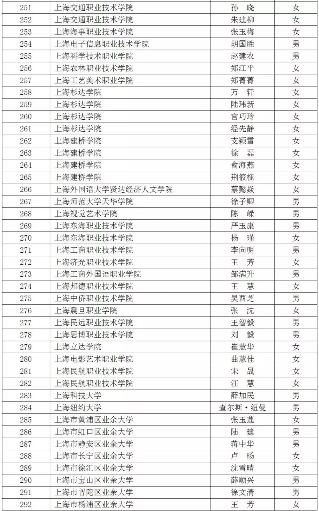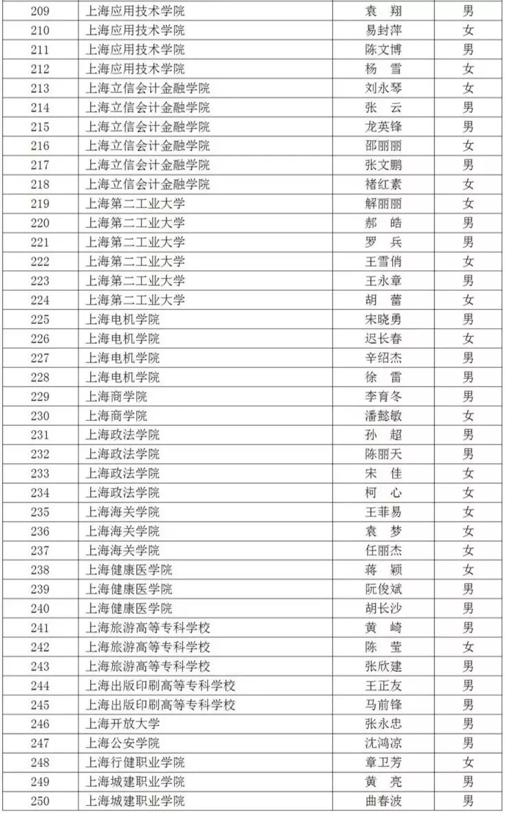 2019年“上海市育才奖”拟获得者名单