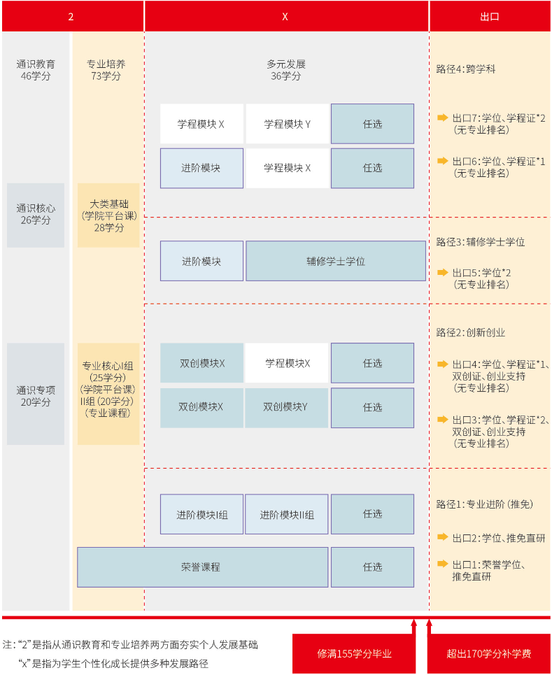 ▲bat365在线登录网站注册赠送36本科生“2+X”培养体系图
