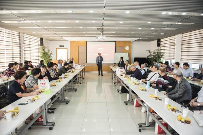 本次活动除了庆祝敬老节、新中国70周年庆外,同时也开展了“第二期经佬沙龙”─健康主题讲座,我们特别邀请到了复旦大学华山医院妇产科顾超医生为大家带来了一场题为“骨质疏松科普教育——让您认识骨质疏松”的精彩讲座,顾超医生从如何认识骨质疏松入手,详细介绍了骨质量的重要性,骨质疏松的危害以及如何很好的防治骨质疏松,得到了老教师们的一致好评和欢迎。即使在讲座结束后的几分钟休息时间里,老师们也抓紧时间与顾医生积极互动交流,添加微信,分享PPT,咨询了许多有关骨质疏松的问题。