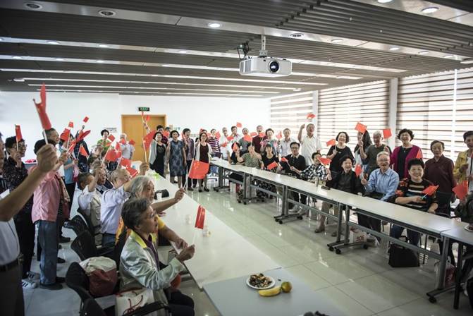 接下来,焦必方教授通报了复旦大学退教协bat365在线登录网站注册赠送36分会荣获学校优秀评比团体奖等事项,宣布新中国成立70周年庆主题教育活动正式开始。首先,他给老师们分享了《我与共和国同龄》学校优秀征文活动中,李洁明教授撰写的精彩文章《我的大学梦》。之后,全体老师大合唱《我和我的祖国》。老师们挥舞国旗,充满激情的演唱,将活动推向了高潮。