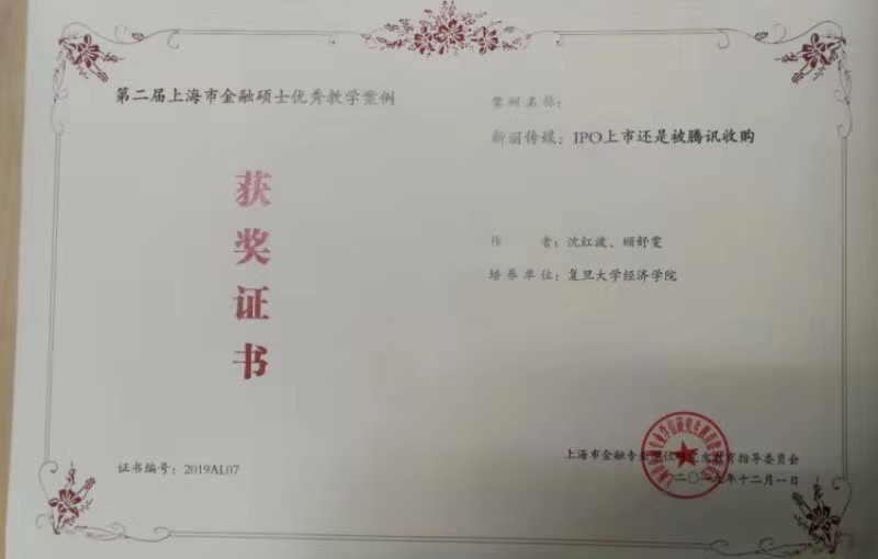 bat365在线登录网站注册赠送36沈红波副教授、顾舒雯撰写的《新丽传媒:IPO上市还是被腾讯收购》在第二届上海市金融硕士优秀教学案例评选中荣获优秀案例奖。