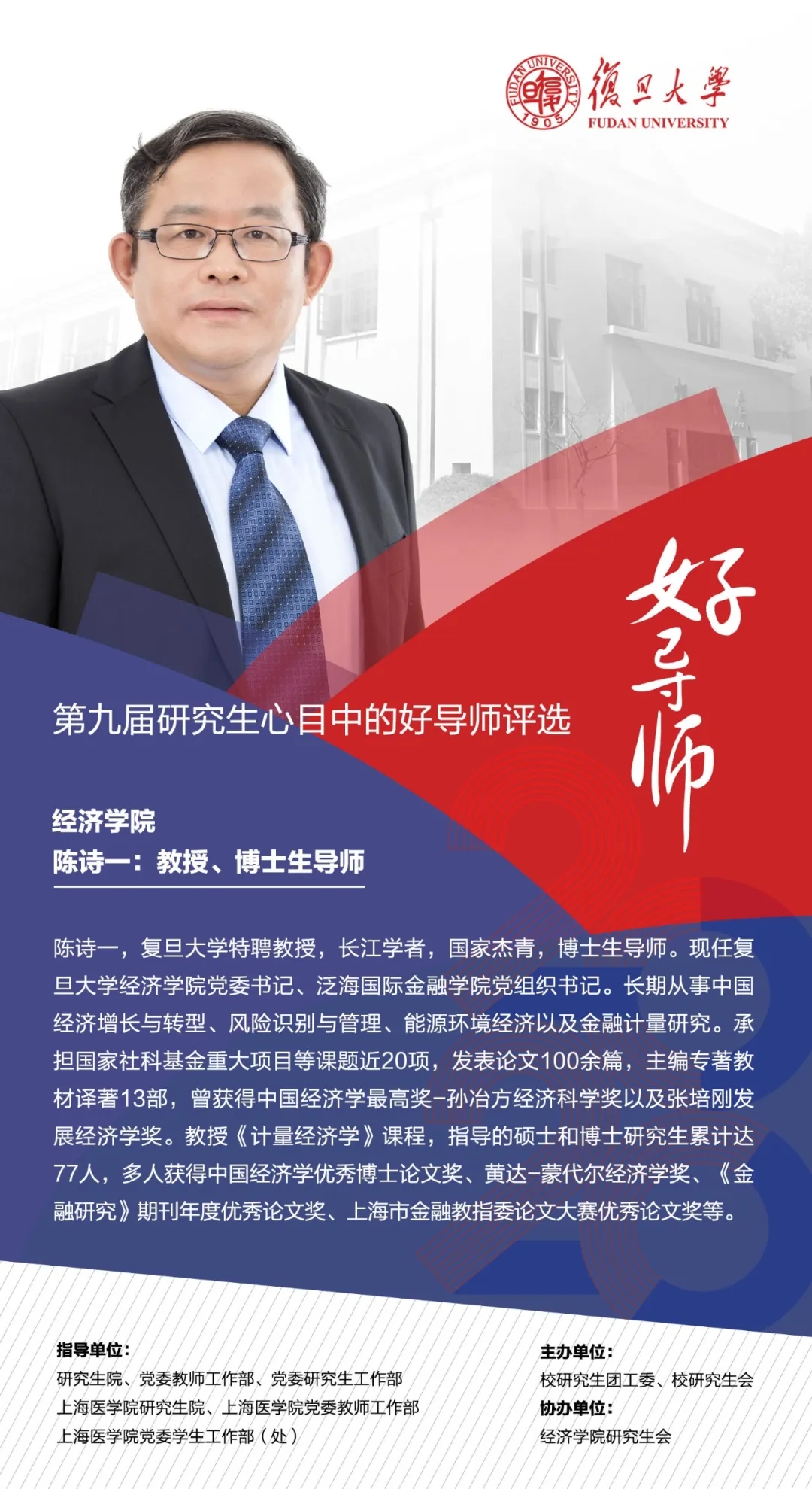 而在这诸多光环之下,陈诗一教授始终没有忘记培养出更多优秀的学生是他孜孜以求的一大目标。陈诗一教授所指导的研究生也先后获得当代经济学基金会2018年中国经济学优秀博士论文奖、黄达-蒙代尔经济学奖、上海市优秀毕业生、上海市金融教指委论文大赛优秀论文奖等。
