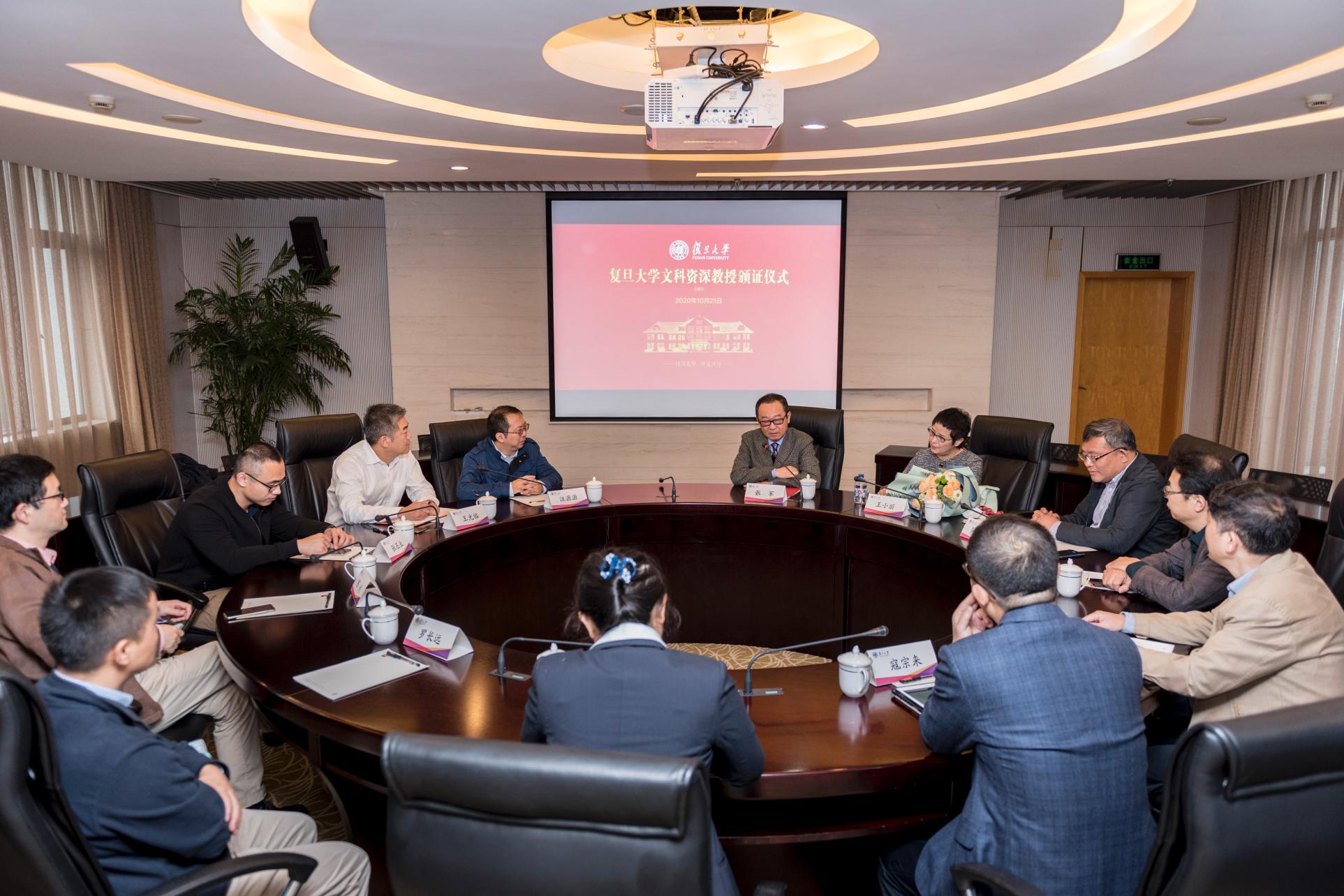 ▲10月21日上午,复旦大学文科资深教授颁证仪式举行