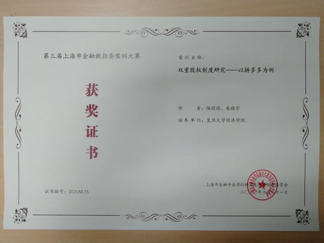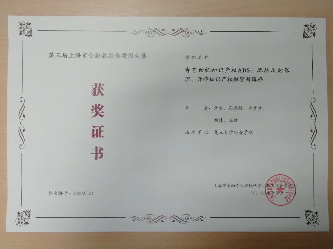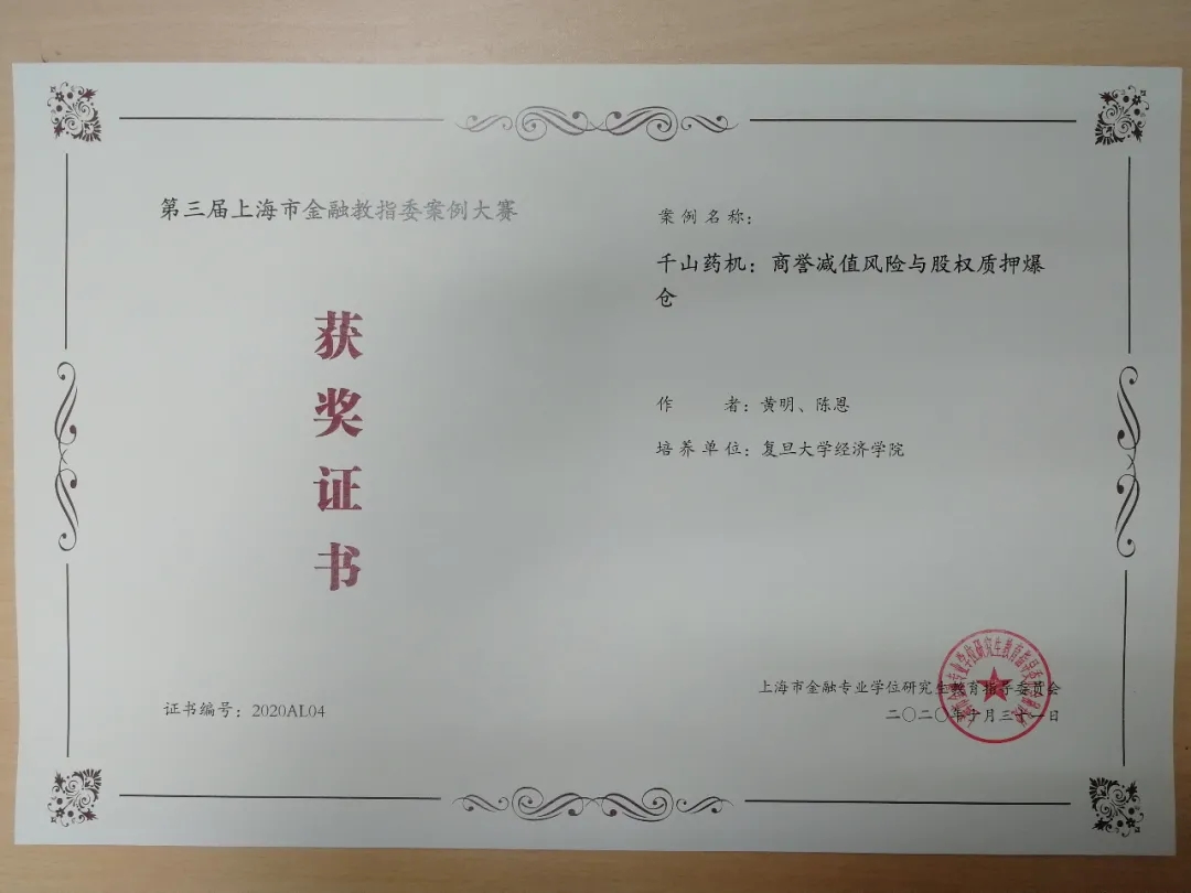 bat365在线登录网站注册赠送36黄明老师、陈恩撰写的《千山药机:商誉减值风险与股权质押爆仓》,卢华老师、马思敏、李梦梦、刘佳、王健撰写的《奇艺世纪知识产权ABS:玩转反向保理,开辟知识产权融资新路径》,陆前进老师、朱晓宇撰写的《双重股权制度研究——以拼多多为例》,孙琳老师、潘欣撰写的《中国平安:百亿股票回购计划》,孙健老师、徐辉撰写的《Libra:数字货币对金融体系的冲击与重构》在第三届上海市金融教指委案例大赛中获得优秀案例奖。
