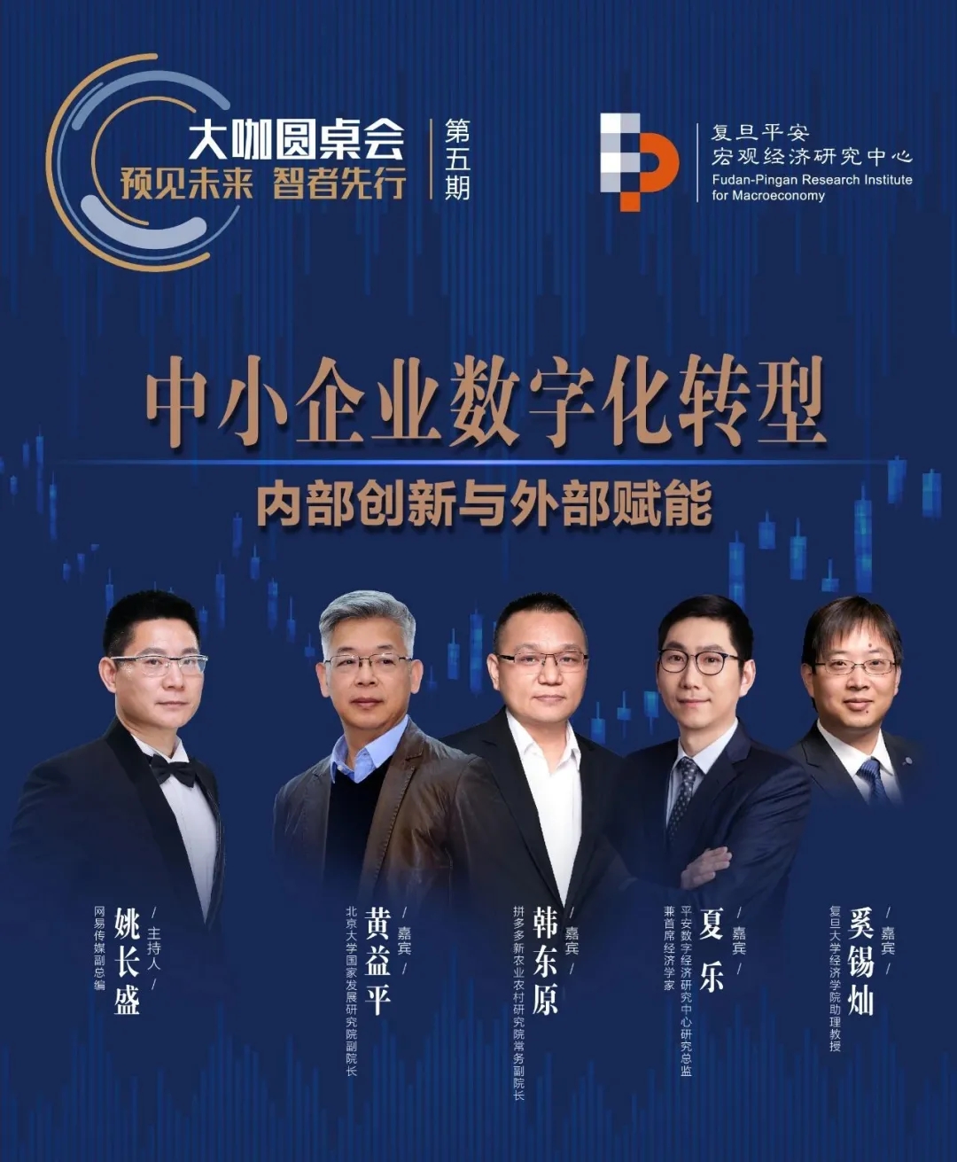 11月8日下午,由复旦平安宏观经济研究中心主办、平安科技协办的“预见未来,智者先行”大咖圆桌会第五期圆满举行。本次会议主题为“中小企业数字化转型:内部创新与外部赋能”。出席会议的嘉宾有北京大学国家发展研究院副院长黄益平,拼多多新农业农村研究院常务副院长韩东原,平安数字经济研究中心研究总监兼首席经济学家夏乐,bat365在线登录网站注册赠送36助理教授奚锡灿,会议主持人为网易传媒副总编姚长盛。复旦平安宏观经济研究中心还在此次会议中发布了由复旦和平安团队合作撰写的《中小企业融资》系列报告之三。在主题演讲环节,各位参会嘉宾就中小企业数字化转型问题进行了精彩的发言。