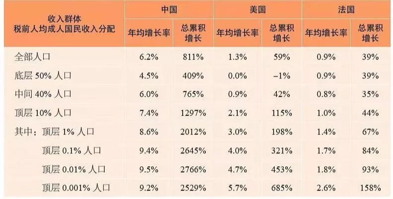 表1 1978-2015年收入增长及不平等:中国与富裕国家对比