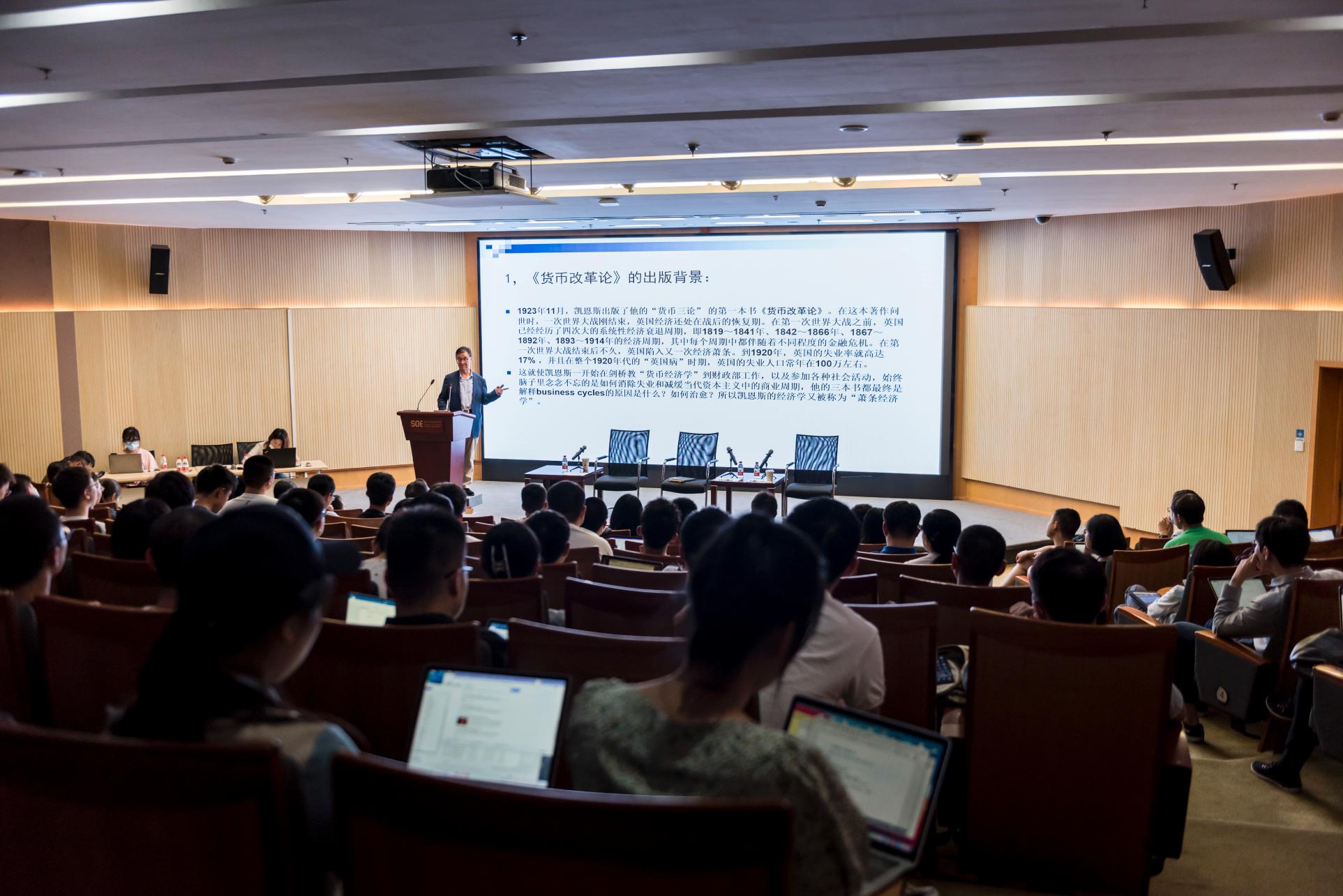 张军教授随后做了简短发言。他首先回顾了求学时凯恩斯的宏观经济学对老一代中国经济学家的深刻影响,然后介绍了凯恩斯的《通论》所展示的宏观分析的思想。在此基础上,他分析了世界经济目前面临的基本问题以及凯恩斯的宏观分析的思想对我们当代的启示。第一,凯恩斯的主要贡献之一是把市场预期、尤其是企业家的预期引入到宏观经济分析中。凯恩斯认为,经济短期波动很大程度上受到市场预期的支配。中国当前的宏观政策在市场预期管理方面需要做得更好。第二,凯恩斯著作的核心主题是管理总需求。而当今我们所处的时代就是需求的持久低迷。日本、美国、欧洲等发达经济体出于不同的原因,均存在总需求不足的问题,他总结说,日本是由于进入“低欲望社会”;美国是由于财富和收入分配恶化引发社会撕裂和政治撕裂;欧洲则是由于劳动力市场无法出清,存在长期高失业和政府债务问题——真可谓不幸的家庭各有各的不幸。第三,中国在当下也要高度重视管理市场预期和管理有效需求这两个重要问题。而全球面对低迷的总需求这一难题,传统货币政策已经超越底线,甚至现代货币论(MMT)大行其道,正在颠覆我们的认知。