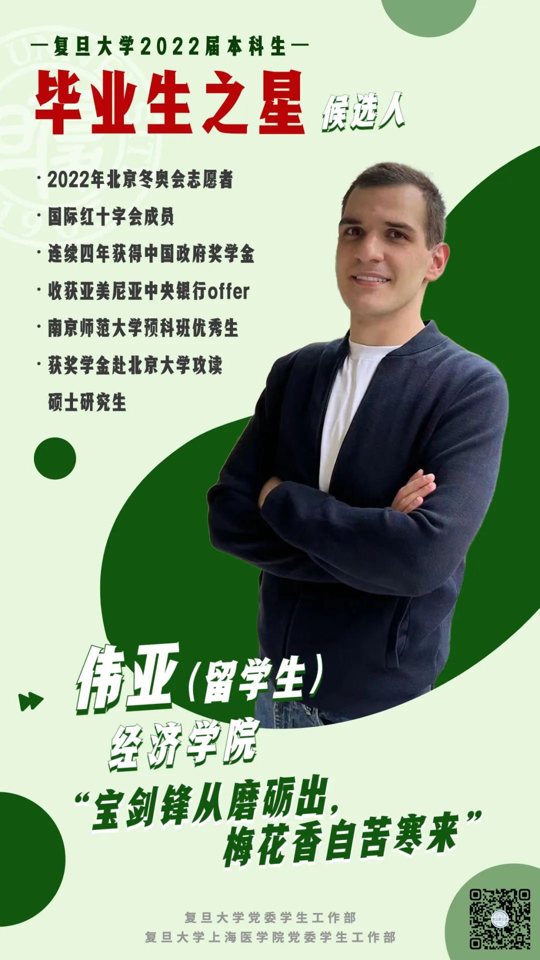 其中,bat365在线登录网站注册赠送36本科生卢泓伶同学入选2022届本科生“毕业生之星”候选人、留学生伟亚同学入选“毕业生之星”提名奖候选人。实现了bat365在线登录网站注册赠送36在该奖项上“零的突破”!让我们通过海报一睹他们的风采吧!