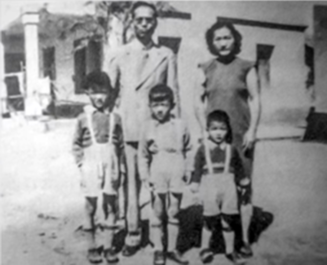 图 |1946年厉德寅和蒋硕德夫妇和他们的三个儿子无咎、无吝和无畏在昆明住宅前