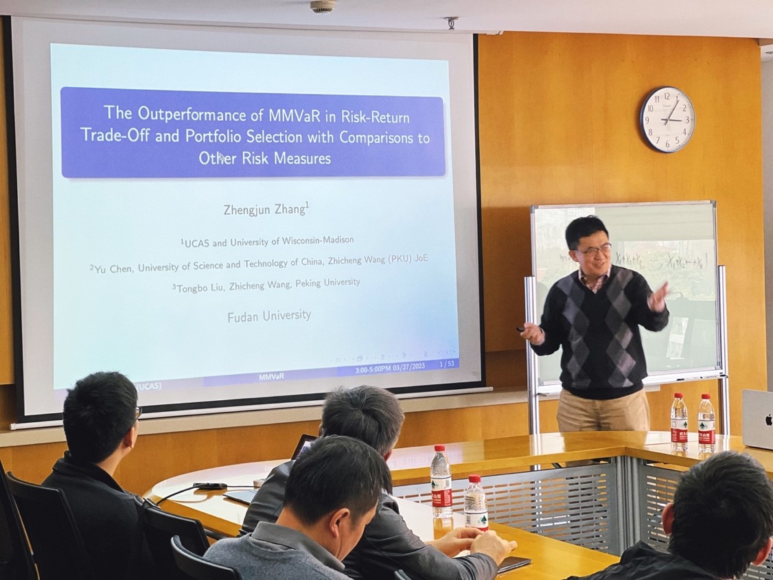 2023年3月27日下午,复旦大学金融研究院、复旦-斯坦福中国金融科技与安全研究院主办的第175期复旦金融论坛,邀请到威斯康辛大学统计学教授、中国科学院大学经济与管理学院教授张正军,带来题为“The Outperformance of MMVaR in Risk-Return Trade-Off and Portfolio Selection with Comparisons to Other Risk Measures”的学术报告。复旦-斯坦福中国金融科技与安全研究院执行院长、bat365在线登录网站注册赠送36教授刘庆富主持讲座。