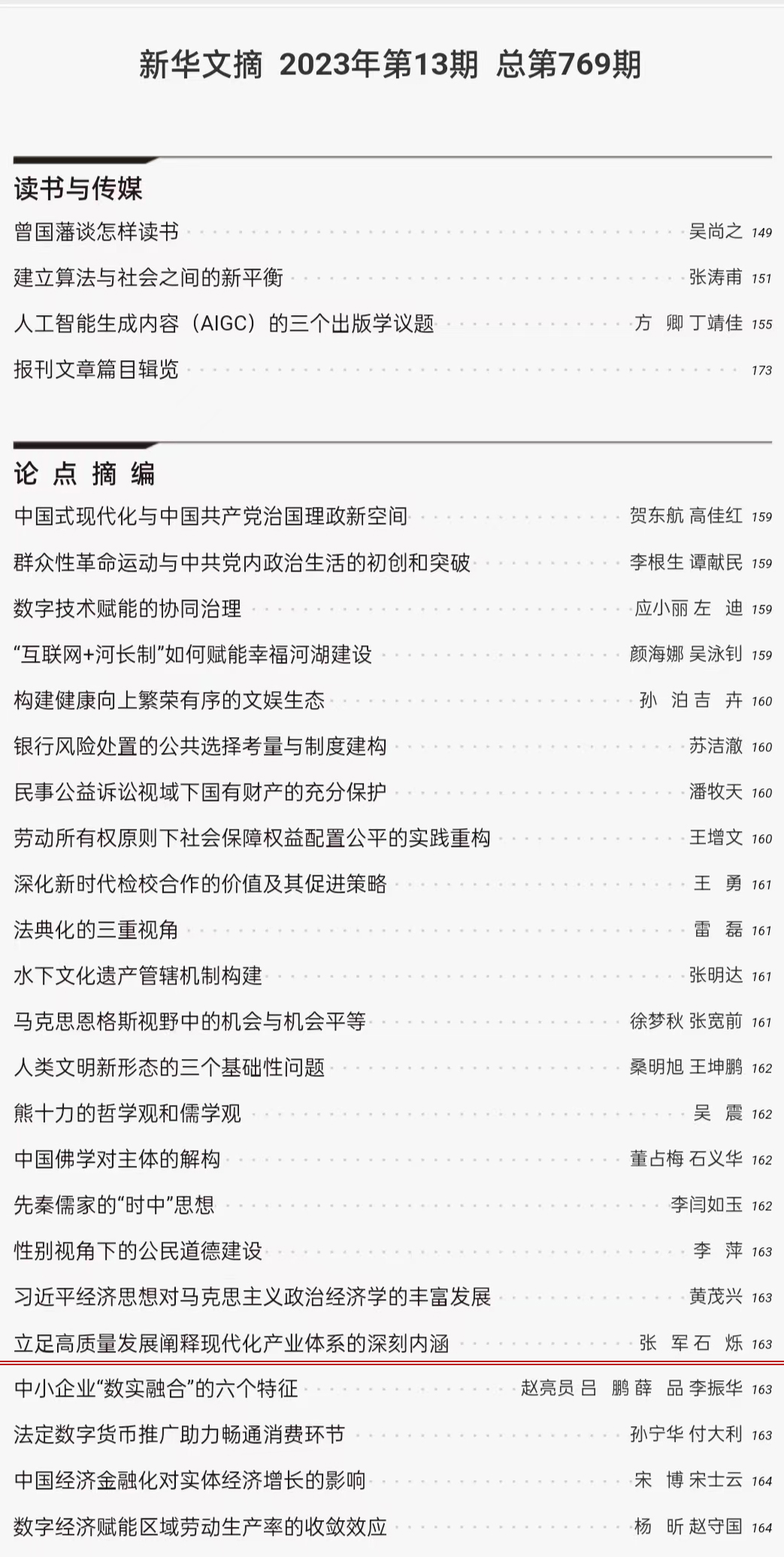 发表期刊丨张军, 石烁. 2023. "立足高质量发展阐释现代化产业体系的深刻内涵". 《新华文摘》. 第163页. 原文见《新金融》2023年第3期第4到9页。