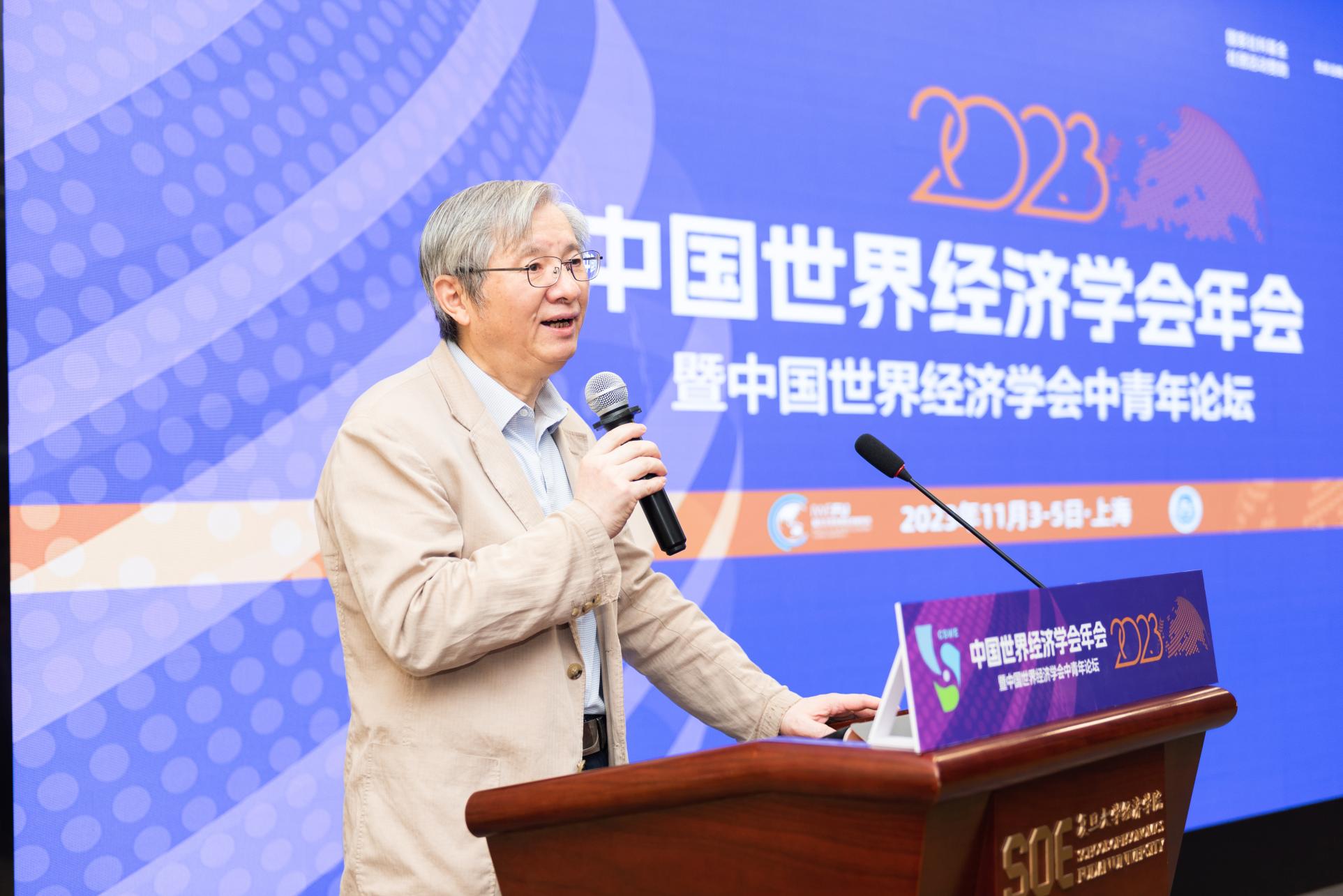 2023年11月4日上午,中国世界经济学会2023年年会暨中青年论坛开幕式在复旦大学光华楼吴文政报告厅举行。