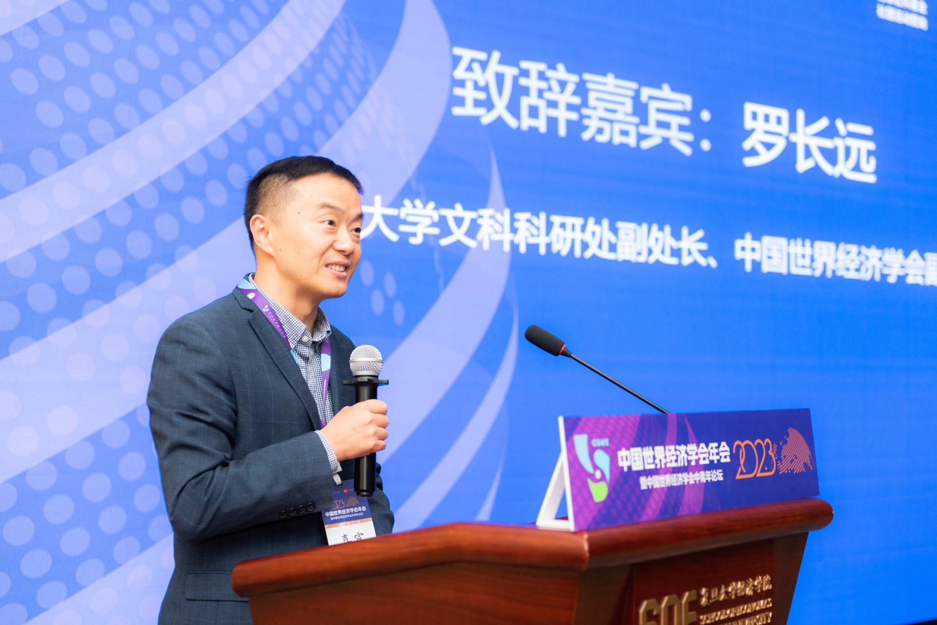 复旦大学文科科研处副处长、中国世界经济学会副会长罗长远教授代表本次会议承办方首先致辞,他表达了对学会及张宇燕会长、院系所领导、演讲嘉宾、论文汇报者、主持人、期刊编辑、参与会议组织的老师和同学们的感谢,并期待各位前辈和师友继续支持复旦大学世界经济学科的发展。