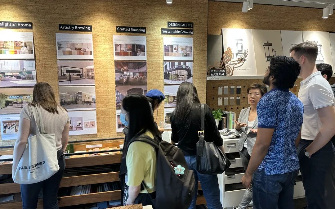星巴克的家具设计有何玄机?灯光明暗是否会影响顾客的咖啡购买意愿?在第一条路线中,星巴克家居设计部门的同事们向同学们介绍了不同应用场景下的设计思路,以及星巴克室内设计的环保理念,探讨了如何打造一个低碳且高端舒适的室内环境。