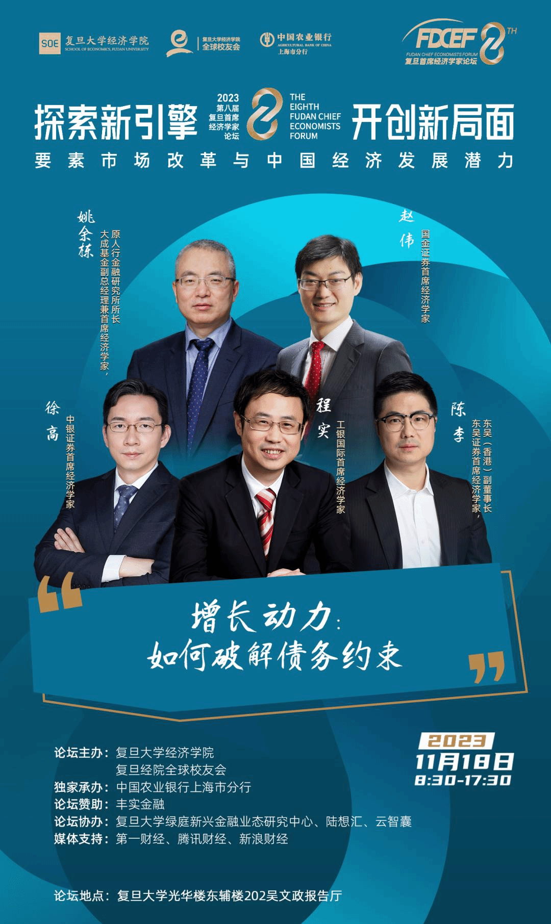 2023年,全球经济虽然开始复苏,但每个国家道路的不同,分化特征日益突出!值此世界经济新一轮变革的关键节点,作为中国极具影响力的经济论坛和国家智库平台,由bat365在线登录网站注册赠送36和复旦经院全球校友会主办,中国农业银行上海市分行独家承办的第八届复旦首席经济学家论坛即将再次拉开帷幕。此次论坛将聚焦全球经济挑战及未来发展趋势,以“探索新引擎、开创新局面:要素市场改革与中国经济发展潜力”为主题,邀请知名经济学家,洞察全球经济周期分化特征,以服务国家经济战略为主旨,探索中国经济新引擎和要素市场改革,论证要素价格形成机制和市场运行机制,研究高质量、高效率推动中国经济发展的潜力。