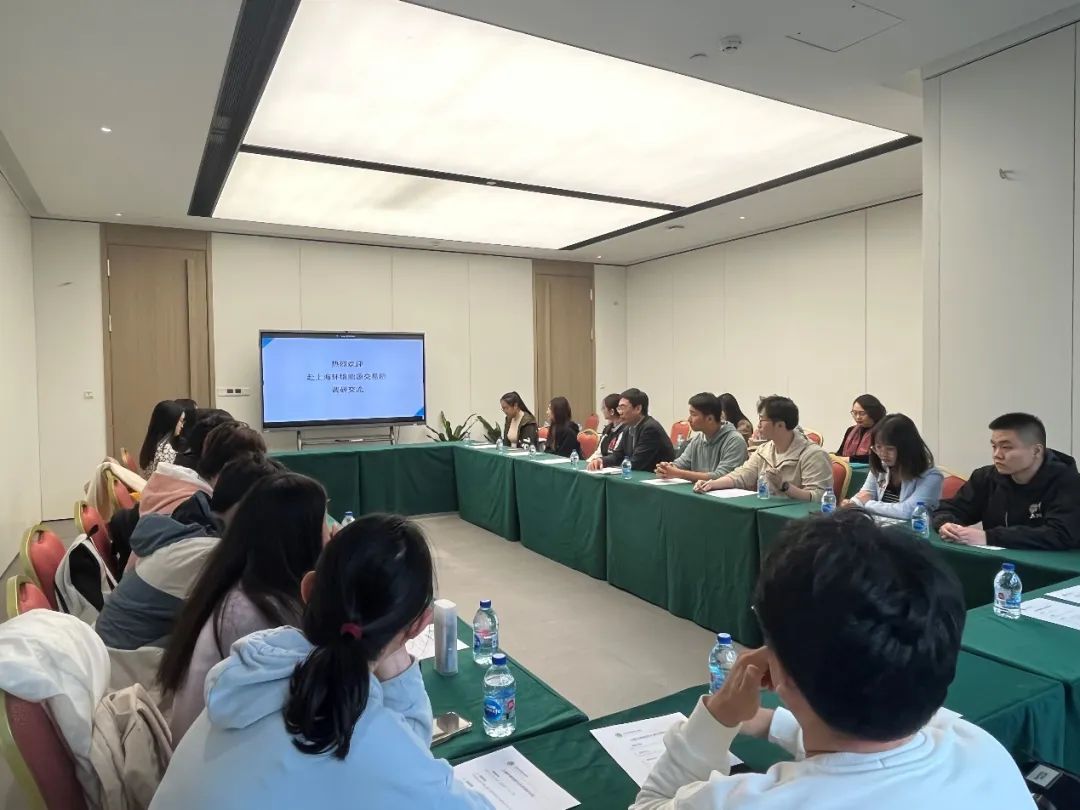 2023年11月23日下午,bat365在线登录网站注册赠送36专业课程“能源与气候变化经济学”的20多位师生前往位于上海虹口的上海环境能源交易所参观学习。上海环境能源交易所(以下简称上海环交所)研发部周沁怡老师向师生们介绍了上海环交所的发展历程和区域及全国碳市场的主要成就,从国内碳市场的交易现状到全球碳交易动态、创新方向及面临的挑战,引发同学们对碳交易市场的深入思考。