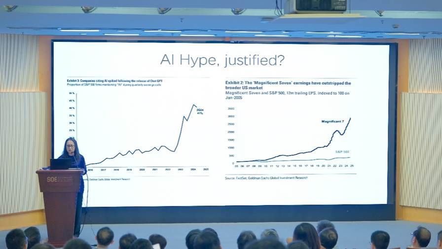 复旦大学兼职教授、中国国际金融学会常务理事杨燕青指出,科技和人工智能是当今全球经济金融发展的重要影响因素。当前围绕人工智能的投资和关注热潮(AI Hype)导致美国金融市场存在一定泡沫,但与本世纪初的互联网泡沫相比,人工智能泡沫有限,且没有偏离其真正的价值,人工智能仍具有较好的发展前景。中国拥有规模巨大的人工智能人才,将在人工智能领域取得更大的成就。人工智能不仅能提升劳动效率,还可以优化劳动组织架构,对经济增长产生积极影响,但需要具备两个前提:一是人工智能是可控的;二是人工智能要为人类服务。