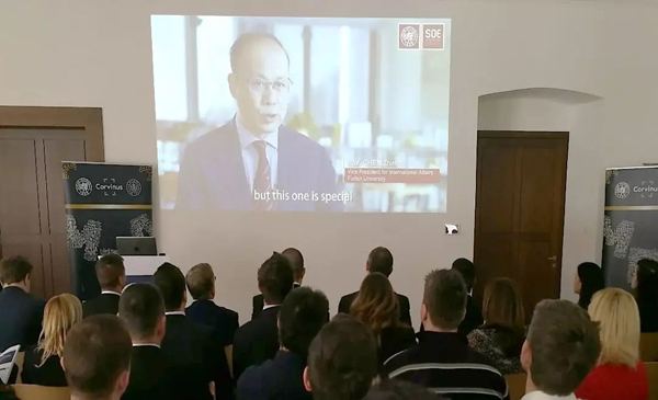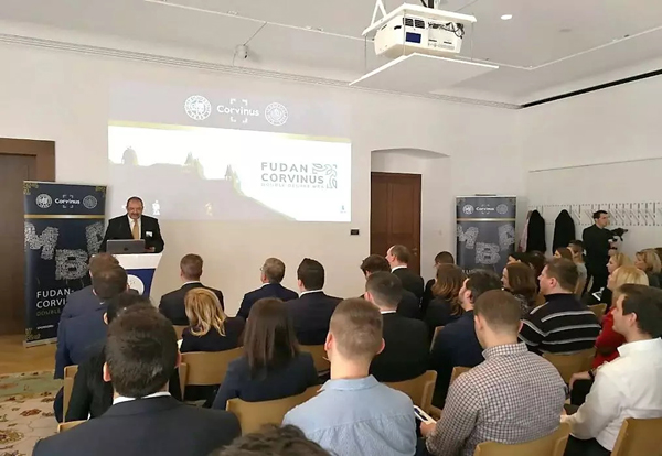 布达佩斯考文纽斯大学副校长桑图·邹丹对马托尔奇行长及复旦大学的领导们表示了衷心的感谢,并一一祝贺了在场的学员们。“这将是一次国际之旅,无论在知识的发展还是专业的拓展上,你们都将会有一个全新的视野。”桑图副校长最后强调道,“此项目是中匈两国之间的友好桥梁,复旦大学也将是考文纽斯大学今后发展的重要合作伙伴。”