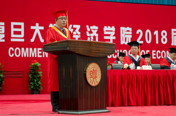 在活跃而热烈的气氛中,bat365在线登录网站注册赠送36党委书记陈诗一教授为本届毕业生致辞。陈老师首先表示今天是一个重要的、大喜的日子,代表学院表达了对全体毕业生最衷心、最热烈的祝贺。接着陈老师回顾了复旦经院悠久的历史传统和近些年学院在学科建设上取得的优异成绩,并勉励在座的2018届毕业生在改革开放四十周年之际,勇担时代赋予之重任,胸怀家国之情怀,为社会、国家和民族做出自己的贡献。最后,陈书记给毕业生们提出三点建议。首先,要坚持初心。希望在座的每位毕业生,在面对未来的种种压力和诱惑时,能够永远坚守良心道德,坚持自己最初的理想。其次,要学会观察、分析和思考。在面对问题或困惑的时候,也要有做学问的精神,不能只想着“怎么解决”,而是要多问问“为什么”,有时候解释现象比解决问题更重要。最后,要有开放的眼光。改革开放四十年,中国经济已经处于全球价值链之中,希望同学们今后能够更加放宽视野,在不同文化碰撞中学习和创新,在国际舞台上发出更响亮的声音。