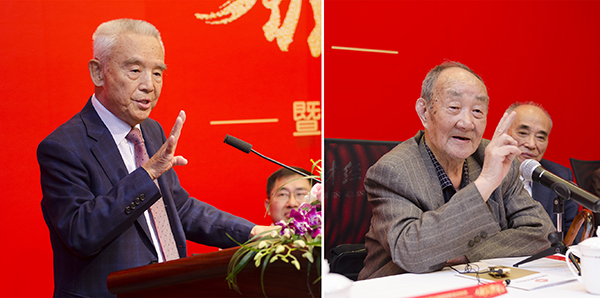 刘鸿儒(左)、龚浩成(右)为获奖者颁发证书和奖牌并致辞