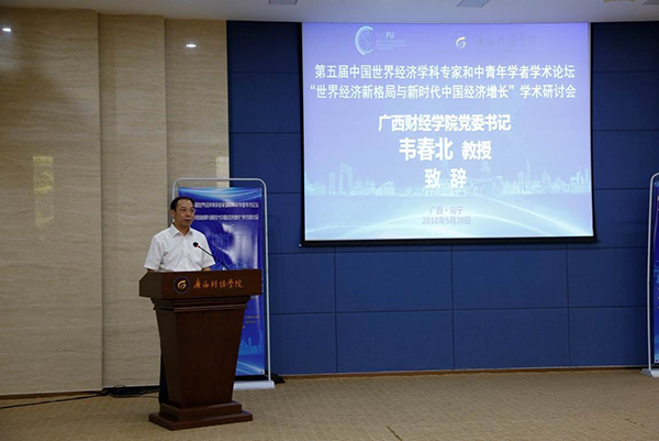 2018年5月19日至20日,第五届中国世界经济学科专家和中青年学者学术论坛——“世界经济新格局与新时代中国经济增长”学术研讨会,在美丽的绿城广西南宁市广西财经学院隆重召开。本次论坛由教育部人文社科重点研究基地复旦大学世界经济研究所和广西财经学院联合主办、复旦-广西海上丝绸之路与区域发展研究院和广西财经学院经济与贸易学院具体承办。来自国内45所高校、6家研究机构、9家期刊、出版社和媒体共约120多位专家学者、资深编辑和媒体工作者参加了此次会议。会议受到《世界经济》、China &World Economy、《世界经济文汇》、《财经研究》、《南开经济研究》、《广东社会科学》、《浙江学刊》、《世界经济情况》和《广西财经学院学报》等期刊编辑部的大力支持。