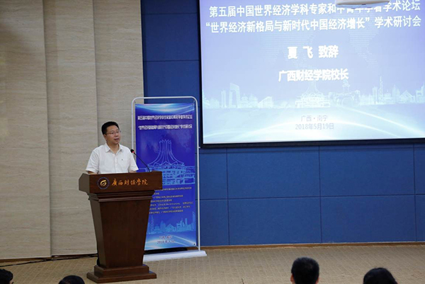 夏飞校长在致辞中表示,此次论坛的召开不仅有利于中国世界经济学科建设,也有利于为推动世界经济新格局和新时代下中国经济增长、外贸增长和双向投资增长等出谋划策,这将积极推动新时代中国经济由高速增长转向高质量发展。