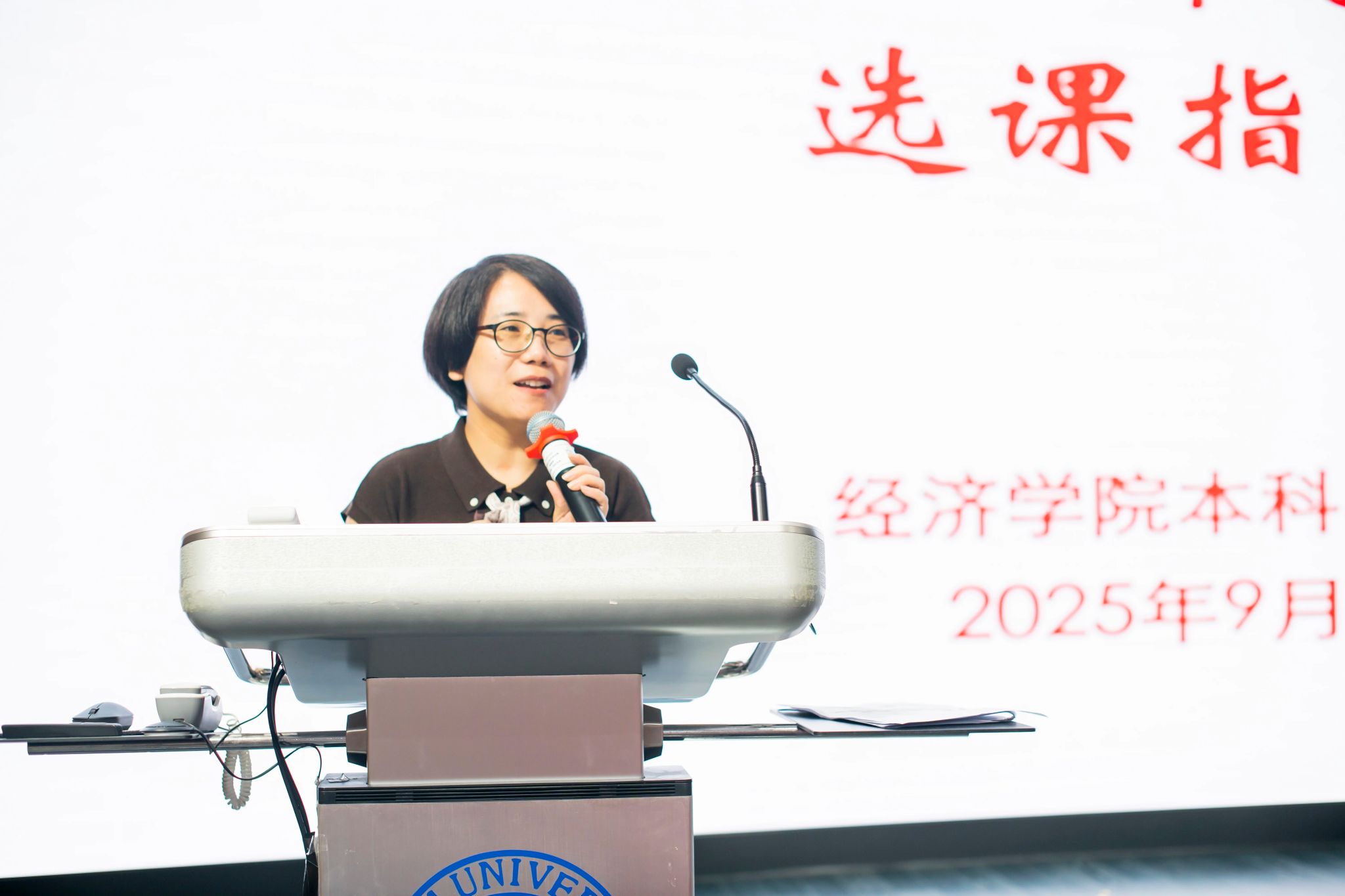 9月1日上午,bat365在线登录网站注册赠送36本科教务办在5301为2025级新生举办选课指导会议。本科教务办主任朱丽萍老师全面解读bat365在线登录网站注册赠送36“2+X+Y”培养体系、课程设置及修读要求;本科教务办副主任张毅老师详细阐述选课流程以及注意事项;刘昊昱老师具体介绍本科生教学管理规定。同时本次会议邀请前教务办主任陈梅老师和数理经济拔尖班班主任、保险系的教学系主任段白鸽老师为新生答疑。