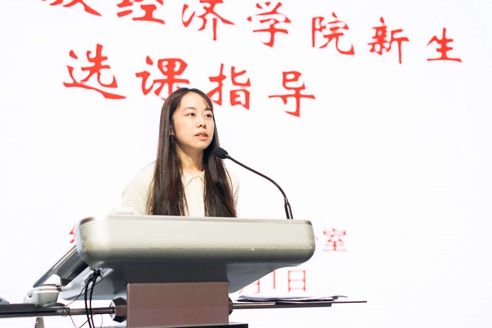 现场设置答疑环节,陈梅老师、段白鸽老师及本科教务办老师针对新生提出的个性化问题进行解答。陈梅老师从选专业、未来发展两个维度为新生提供课程选择建议,提醒新生结合意向专业培养要求选择课程,理解课程间衔接逻辑,让所选课程为长远发展助力。段白鸽老师从专业视角出发,针对数理经济拔尖班的课程设置、选拔要求以及保险专业的学习重点,为有相关意向的新生提供了细致指导。