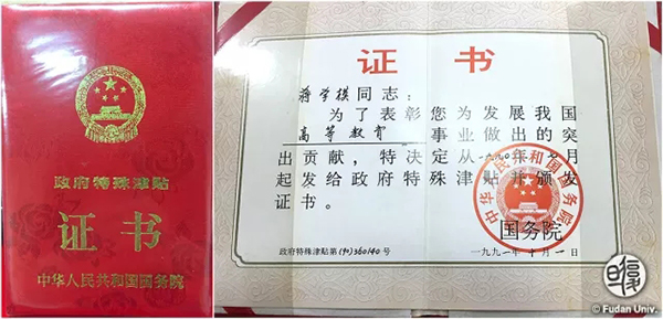 国务院颁发的政府特殊津贴证书