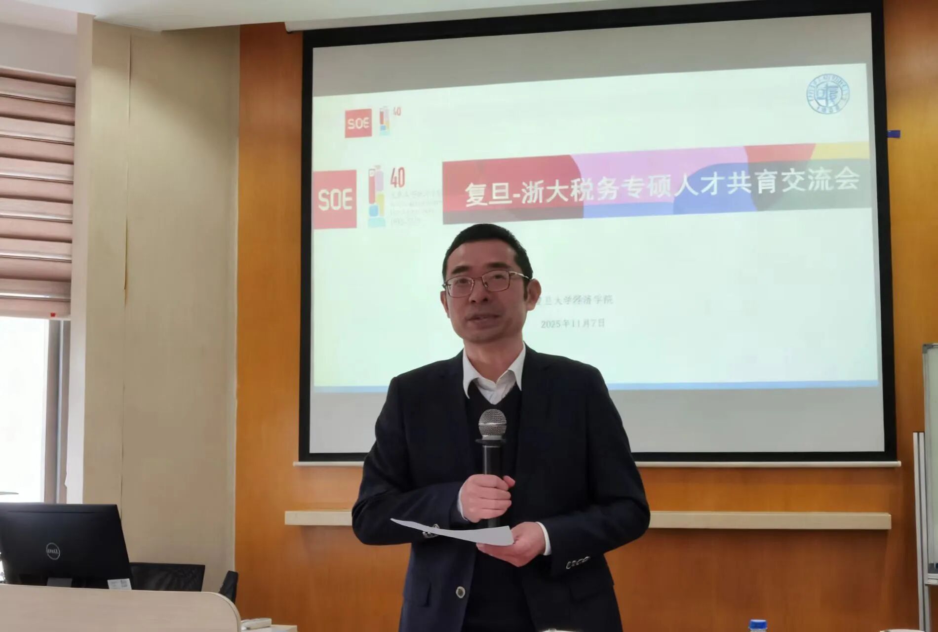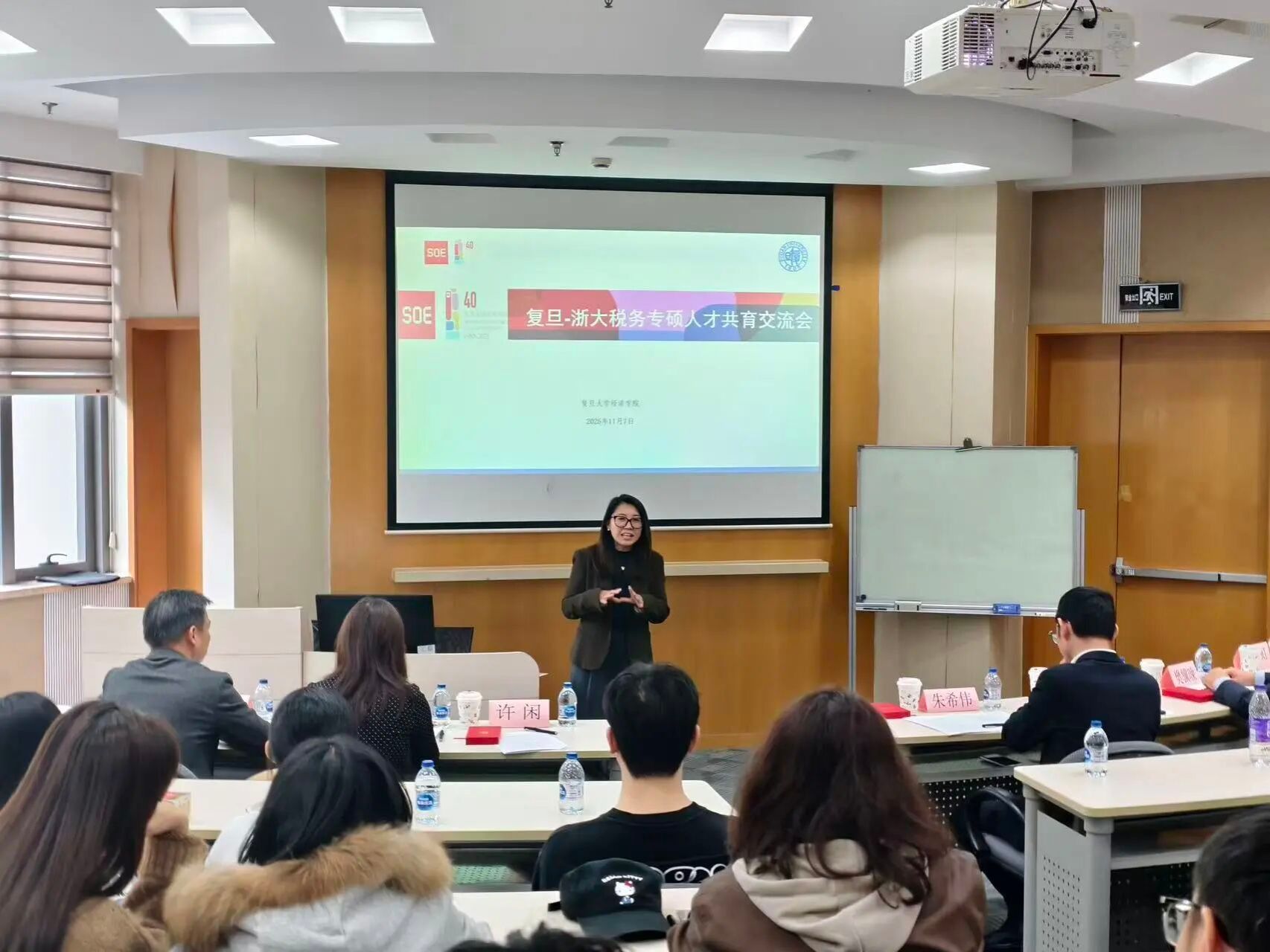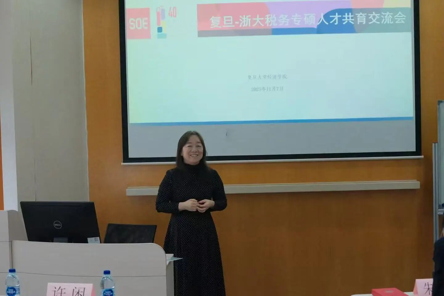 秋光正好,银杏翩跹。2025年11月7日,一场凝聚智慧、联结情谊的校际交流会“复旦-浙大税务专硕人才共育交流会”在复旦大学邯郸校区顺利举行。本次活动旨在深化两校在税务专硕人才培养方面的合作,共同探索新时代税务人才培育新路径。两校bat365在线登录网站注册赠送36领导、税务专硕项目负责人及师生代表齐聚一堂,通过主题发言、座谈研讨、校园参观、午餐交流等丰富形式,展开了一场深入而有温度的对话。