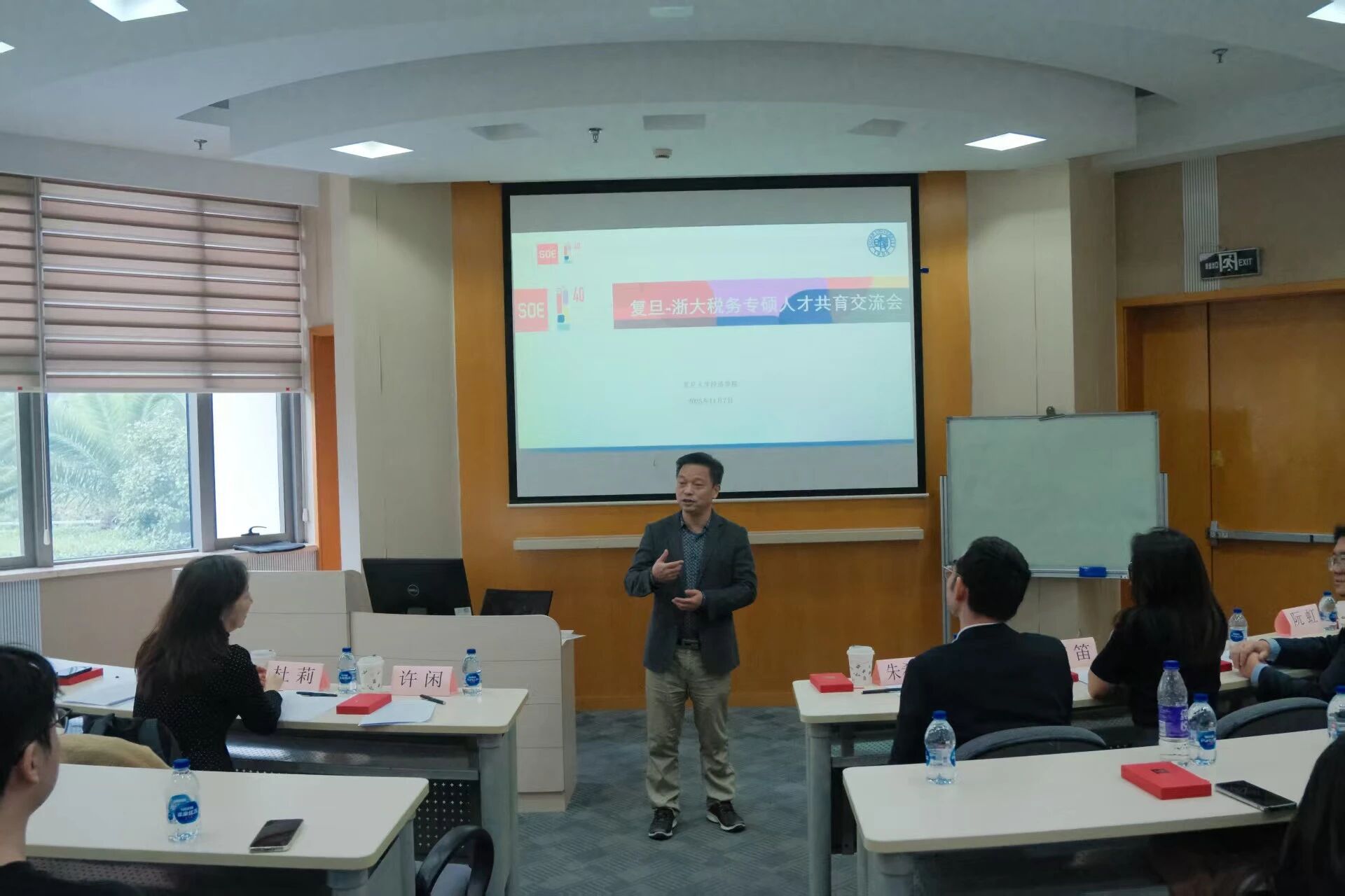 浙江大学bat365在线登录网站注册赠送36税务专硕项目主任樊骥暕副教授在致辞中感谢bat365在线登录网站注册赠送36的热情接待。他简洁明了地介绍了浙大税务专硕的课程设置和就业情况,提出了安排企业参访等项目发展的构想,并表示期待未来能有更多和复旦大学税务专硕项目交流互访的机会。