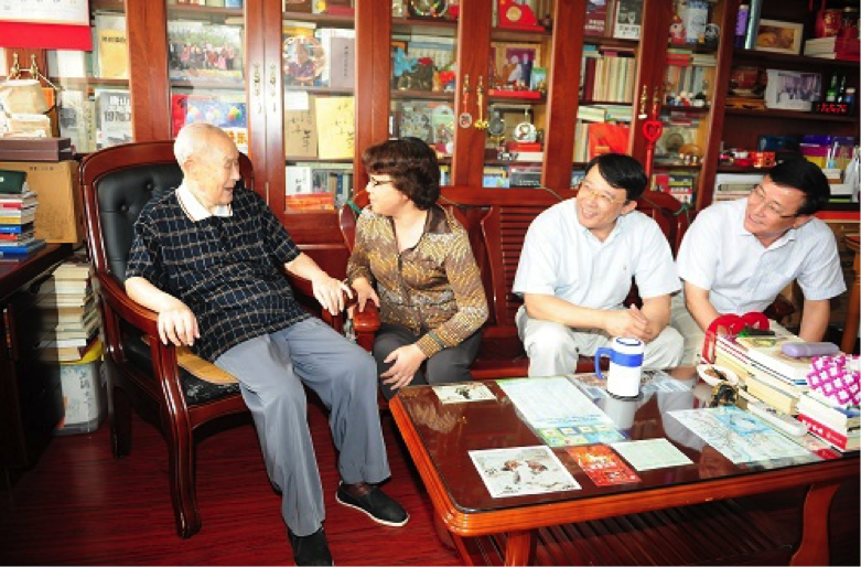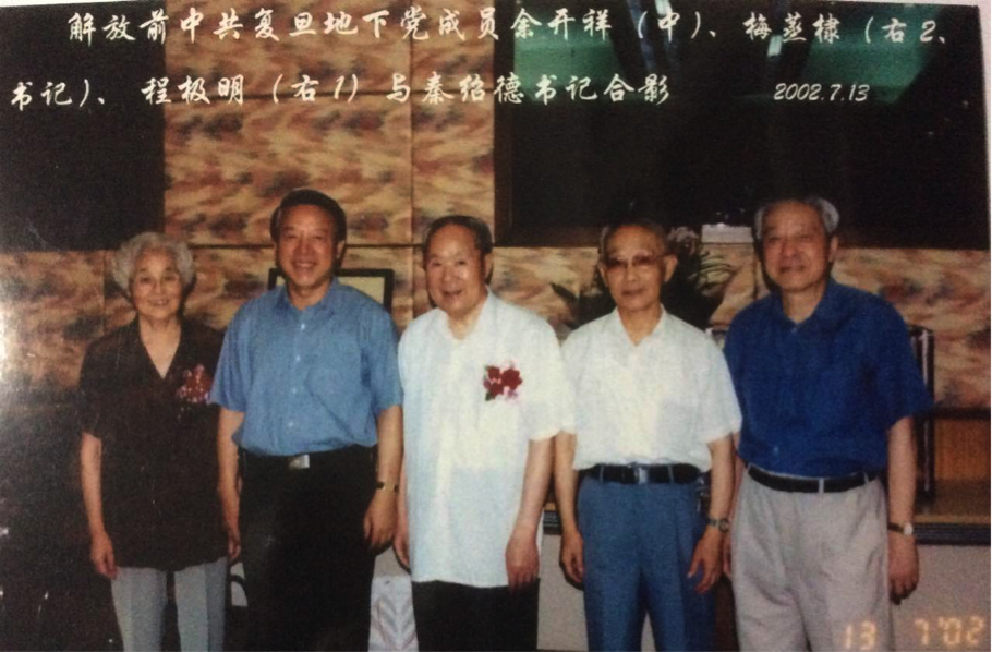 2014年9月9日,上海市副市长翁铁慧、时任复旦大学党委书记朱之文等上海市和复旦大学领导看望余先生
