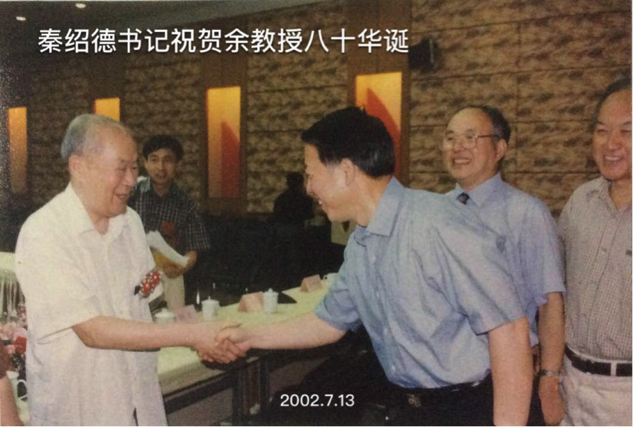 2014年9月9日,上海市副市长翁铁慧、时任复旦大学党委书记朱之文等上海市和复旦大学领导看望余先生