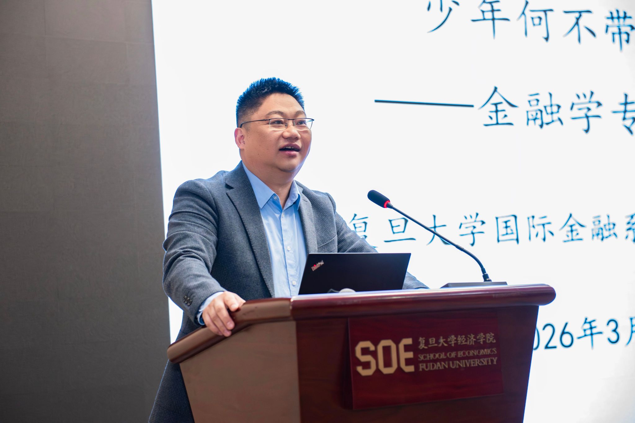 在主题分享环节,复旦大学国际金融系系主任杨长江老师以“少年何不带吴钩——金融学专业漫谈”为题,围绕什么是金融、如何学习金融以及选择金融专业的意义展开分享。他从当下全球“龙虾(Openclaw)热”的新型智能体话题切入,指出人作为万物之灵的特质就在于懂得驾驭外界的力量:阿基米德曾以“给我一个支点就可以撬起地球”描述了使用自然力量的物理杠杆,而金融是人类社会中最伟大的杠杆,通过汇聚涓滴资金以成就大业。金融能够形成杠杆,关键在于其核心要素中蕴含了穿越时间与空间的智慧:愿景(Vision),即处理“现在与未来的关系”,将资源在不确定状态下进行跨时配置,面向未来做资产定价;规则(Rule)与情感(Emotion)则是在处理空间意义上的外部关系问题,能够通过沟通达成共识,使得面向未来的承诺可信,且形成合理的激励机制。