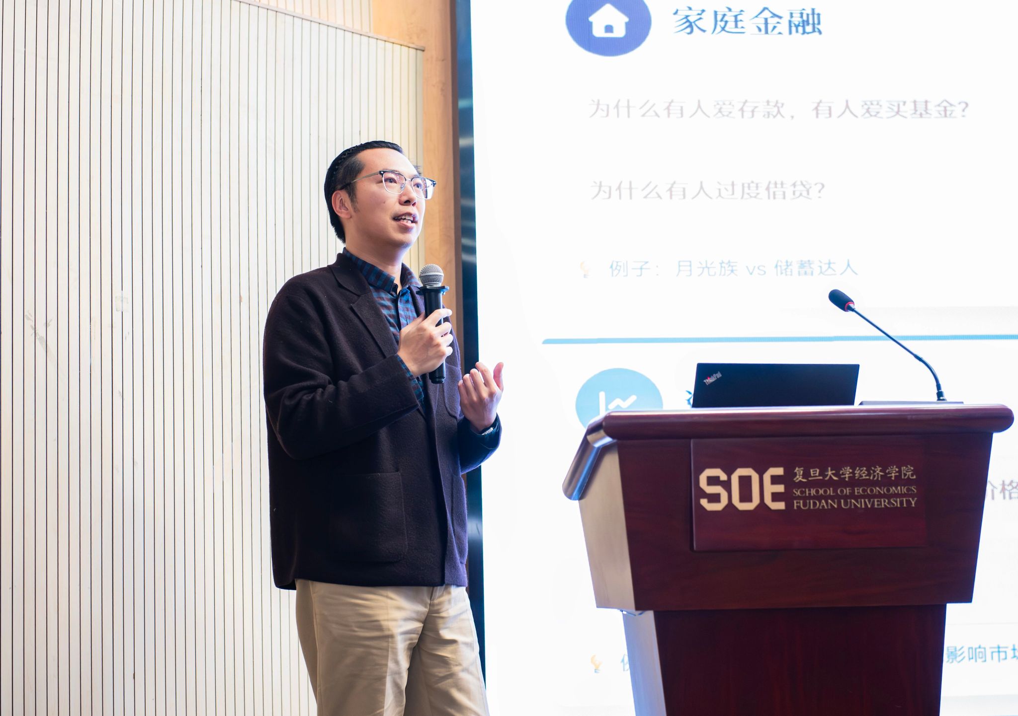 复旦大学金融研究院江嘉骏老师以“致广大而尽精微——解锁金融学研究新蓝图”为题展开分享,他从自身研究经历出发,为同学们展示了金融学研究从微观到宏观的多元维度,介绍了金融学领域值得探索的诸多问题。他指出,金融学研究并非关注“钱本身”,而是考察人在不确定世界中的选择。金融学既能关注宏大的经济运行,也能聚焦细微的行为机制:从投资者在移动终端上的投资行为,到政府开放数据对企业决策的影响,再到注册制改革对资本市场的效果评估,这些研究展现了金融学从微观到宏观的多元维度。