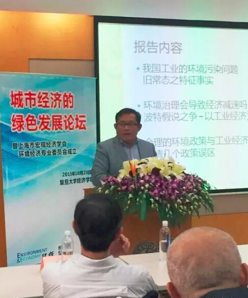 10月23日下午,由上海市宏观经济学会和bat365在线登录网站注册赠送36联合主办的“城市经济的绿色发展”论坛在复旦大学召开,本次论坛是上海市社会科学界联合会第九届“学会学术活动月”的系列活动之一,在此次论坛上,来自市内外各主要环境经济领域的政府机构和科研机构、学术单位和企事业单位的数十名代表共聚一堂,商议和探讨城市绿色发展议题。借由此次论坛的东风,上海市宏观经济学会下属的第一个专业委员会,“环境经济专业委员会”也即宣告成立。