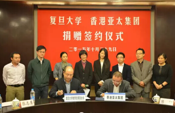 10月29日下午,复旦大学与香港亚太集团捐赠签约仪式在复旦大学逸夫科技楼圆桌会议室顺利举行。香港亚太集团总裁陈智校友、复旦大学副校长张志勇教授等出席了签约仪式。