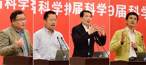 四位学者演讲结束后,详细回答了现场师生的提问。陈晓漫常务副校长为四位学者颁发了有许宁生校长签名的演讲纪念品,并合影留念。
