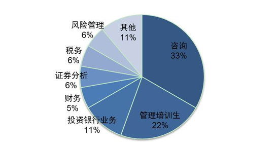 2014届税务硕士18名毕业生全部进入全国乃至亚太地区顶尖金融机构或实体企业的核心岗位就业;咨询、银行、政府机构是前三大就业去向,就业行业与所学专业的匹配度高;从行业分布上看,就业去向比2013届毕业生更加多元,体现出学生较强的综合素质以及良好的适应能力;毕业生人均获得3.2个offer,并且有超过85%的学生在毕业学期开始之前确定了就业去向。