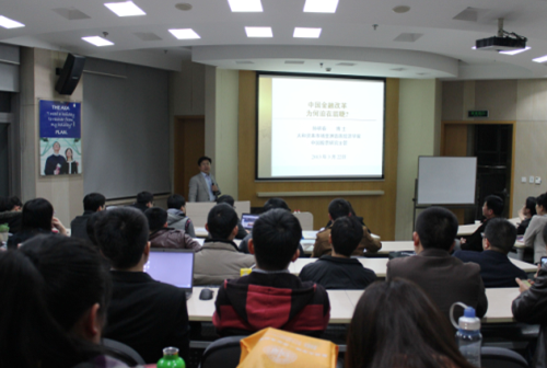 当日晚上,在205报告厅,孙明春博士作为专业学位校外导师应邀为金融硕士班的同学们讲授专业学位实务课程。本次讲座的主题是“中国金融改革为何迫在眉睫?”