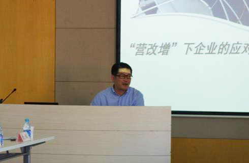 蔡彤导师首先就“营改增对企业经营的影响”问题进行了发言。他的发言从营业税改增值税政策、“营改增”对企业的影响、企业的应对措施、本企业在生产经营过程中遇到的实际问题等四方面进行展开。最后,蔡彤导师还希望在座的师生一起对“公司股权激励税收政策”和“企业全球化战略过程中如何应对税务风险”等现实问题加以深入研究。