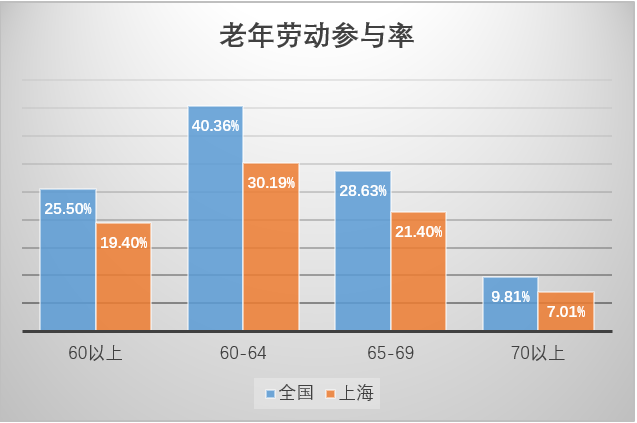 图2. 老年劳动力参与率上海与全国比较