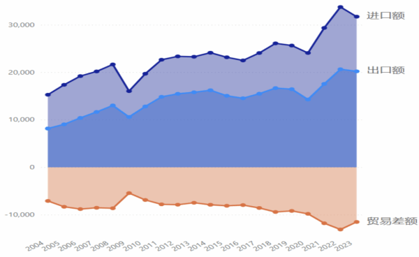 2000-2024年中美贸易依存度变化