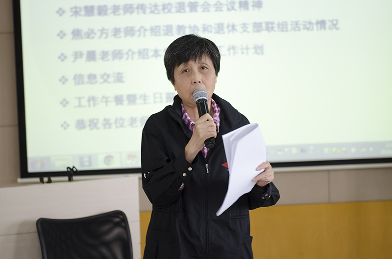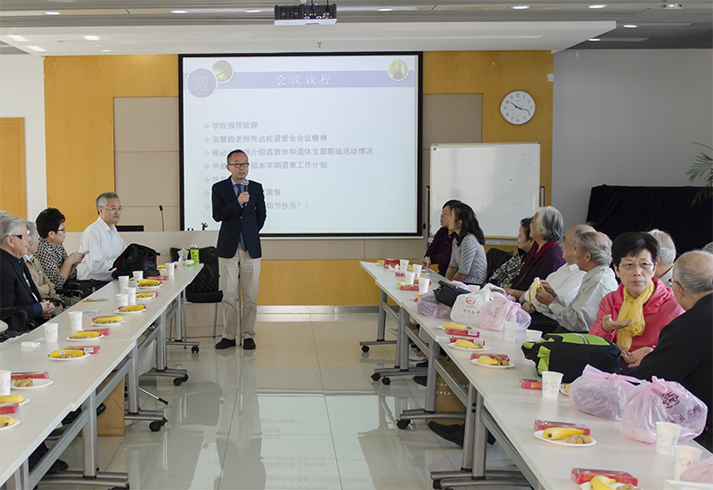 学院分管退休工作的党委副书记尹晨老师向大家简要介绍了学院退管工作小组会议商讨定下的本学期工作安排,鼓励大家积极参与活动。尹老师说学院的发展为退管工作的开展提供了强有力的保障,并向大家介绍了学院离退休教师体检反馈情况和今年离退休教师相关福利发放情况。最后尹老师还补充介绍了学校青岛研究院的建设和对口云南扶贫帮困活动的情况,向大家对学院发展的支持表示感激,同时恳请大家继续关注和支持。