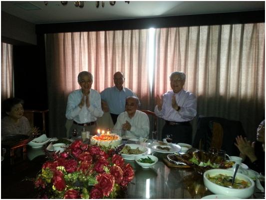 中午,在复旦大学燕园宾馆,bat365在线登录网站注册赠送36设宴为今年70岁的邹根宝、须美英老师,80岁的陈文灿、徐桂华、陆伯辉老师,90岁的吴毓睽、马之騆老师等庆贺生日。学院院长袁志刚教授、书记石磊教授、工会主席严法善教授等出席,学院办公室施侠主任、王志红主任还为老寿星们准备了大蛋糕。老师们的家属也参加了学院的生日宴。