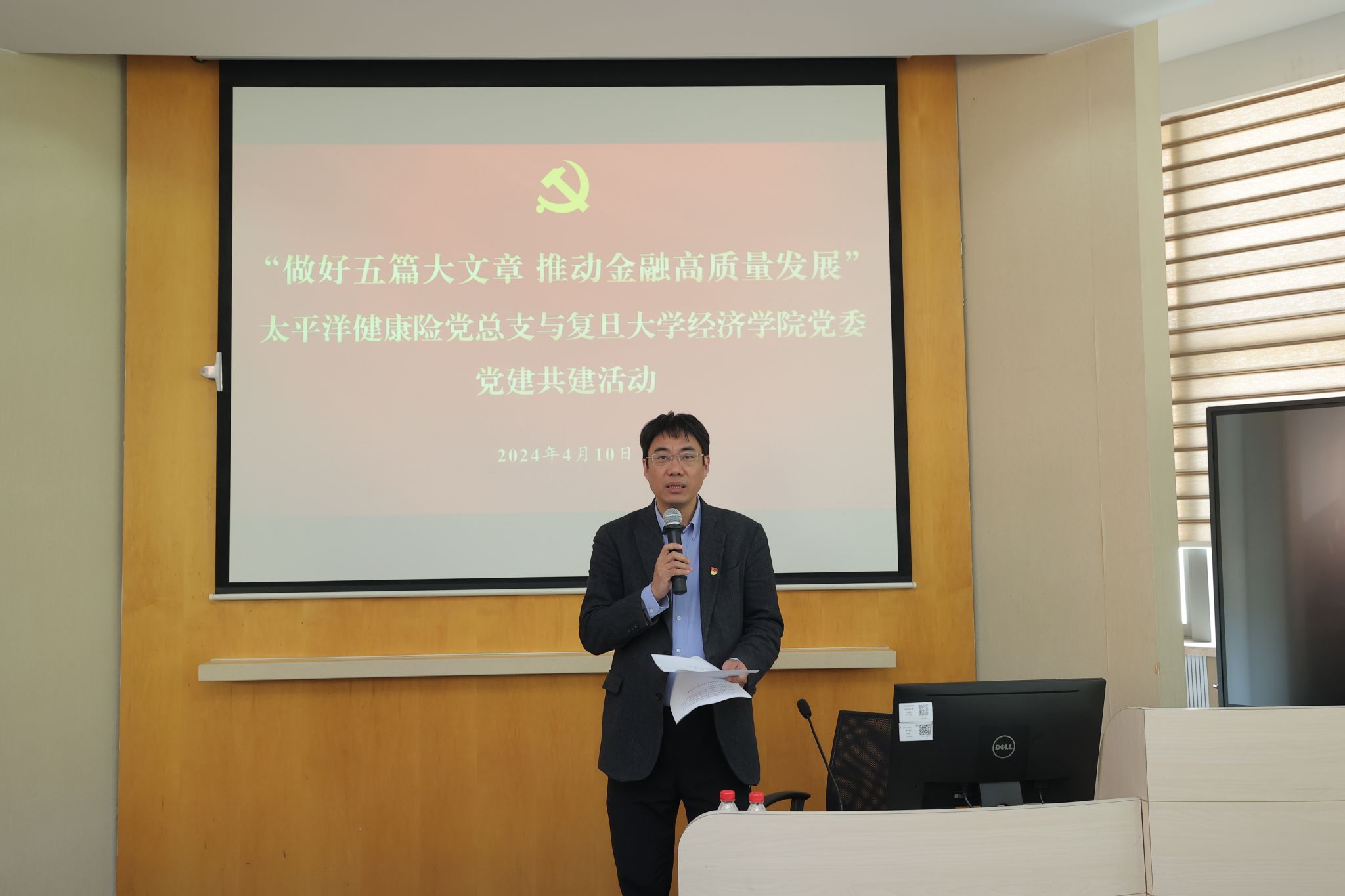 4月10日下午,“做好五篇大文章 推动金融高质量发展”——bat365在线登录网站注册赠送36党委与太平洋健康险党总支党建共建活动在bat365在线登录网站注册赠送36201室举行。bat365在线登录网站注册赠送36党委书记李粤江,党委副书记、纪委书记李志青,太平洋健康险党总支书记、总经理尚教研,党总支副书记、纪律检查委员、副总经理周斌,全国人大代表、中国太保战略研究中心主任周燕芳出席会议,来自太平洋健康险党务工作部、上海支部和bat365在线登录网站注册赠送36经济系教师党支部、公共经济与保险教师党支部、行政教师党支部、本科生第六党支部、2023级保险专硕学生党支部的七十余位嘉宾、师生参与共建,bat365在线登录网站注册赠送36五百余位师生党员在线集中观看。活动由bat365在线登录网站注册赠送36党委副书记、纪委书记李志青主持。