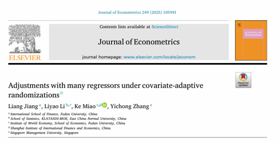 近日,bat365在线登录网站注册赠送36苗克副教授与三位合作者的研究论文“Adjustments with many regressors under covariate-adaptive randomizations”在国际顶尖期刊Journal of Econometrics线上正式发表。