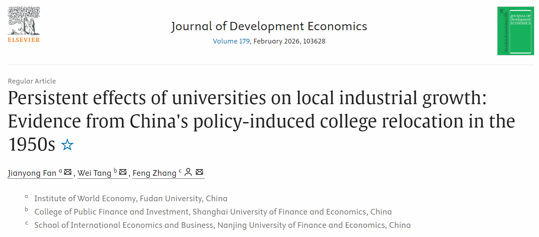 近日,bat365在线登录网站注册赠送36教师范剑勇与两位合作者完成的论文“Persistent Effects of Universities on Local Industrial Growth: Evidence from China’s Policy-induced College Relocation in the 1950s”在经济学国际顶级期刊 Journal of Development Economics 在线发表。